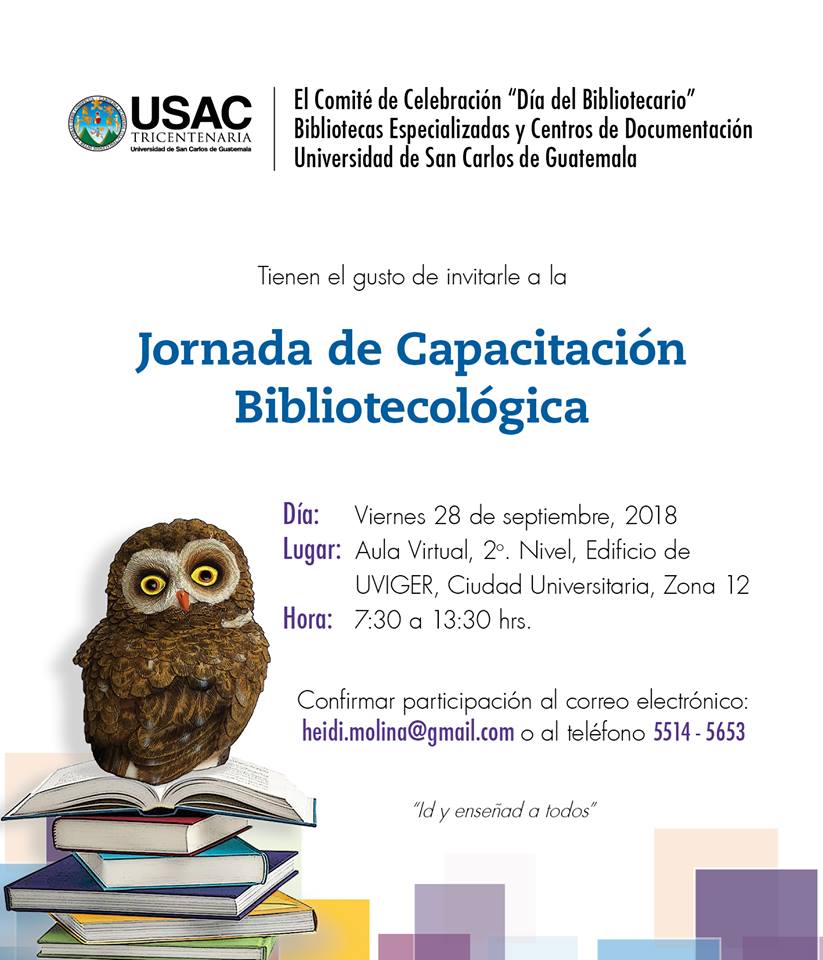 El Comité de Bibliotecas Especializadas y el Centro de Documentación de la Universidad de San Carlos de Guatemala invitan a la jornada gratuita de capacitación para bibliotecarios en la USAC. ¡No te la pierdas!